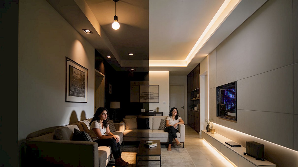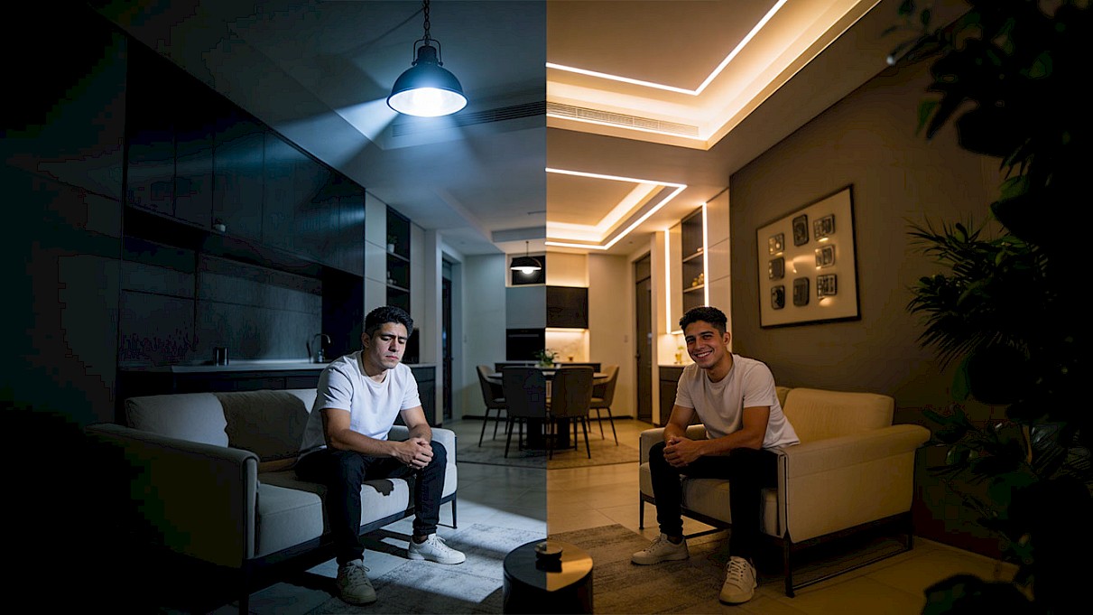 La luz define el “volumen” de un lugar. Si el techo queda oscuro, las esquinas se pierden y las paredes reciben sombras duras, el espacio se percibe más bajo y estrecho. Por eso, por más decorado que esté un sitio, una mala iluminación lo hará ver cerrado, poco cómodo e incluso opresivo: zonas “muertas” sin luz y contrastes exagerados generan estrés visual.